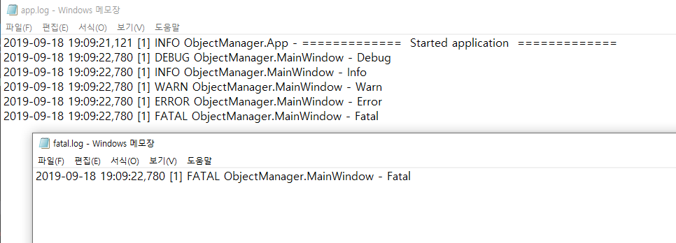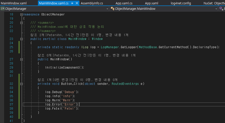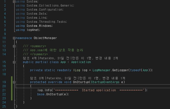 App.xaml.cs 에 log4net 라이브러리를 추가하고 프로그램이 시작 할 때 로그를 기록해봤습니다.