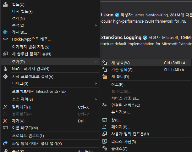 [프로젝트] - [추가] - [새 항목] 클릭