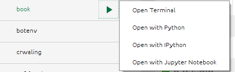 이렇게 생성한 가상환경에서 위와 같이 실행 버튼을 클릭하면 실행 메뉴가 나오는데 Open Terminal 을 클릭하면 현재 가상환경 위에서 동작하는 터미널을 실행할 수 있습니다.